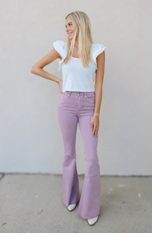 Vervet High Rise Non Distressed Raw Hem Lavender Flares