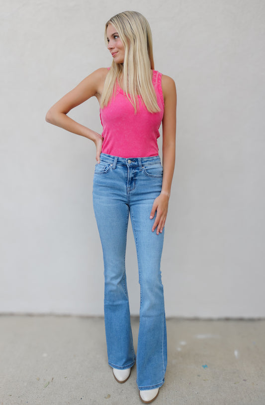 Mica Mid Rise Non Distressed Flares- Light Wash