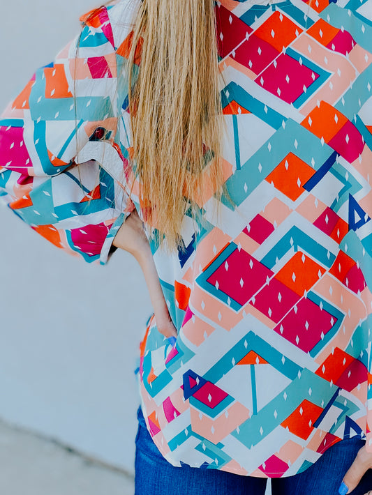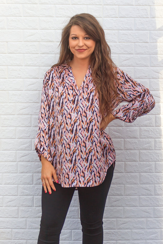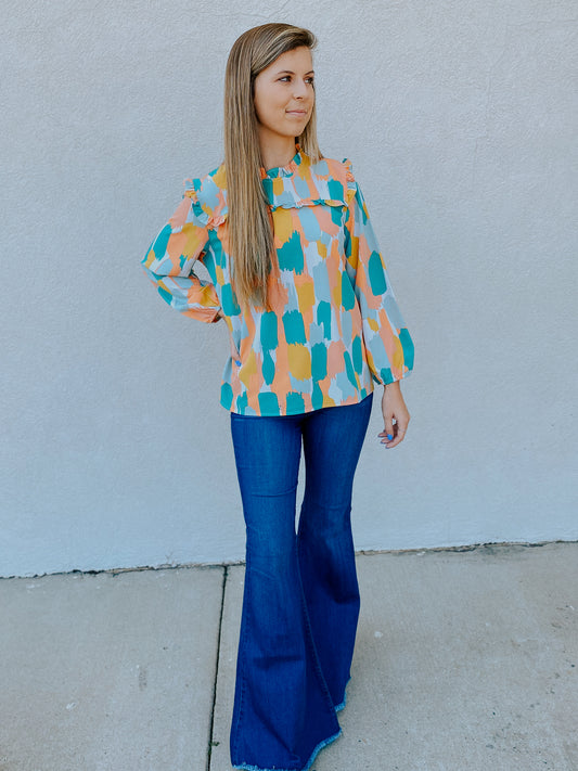 Alisha Top - Orange/Blue Mix