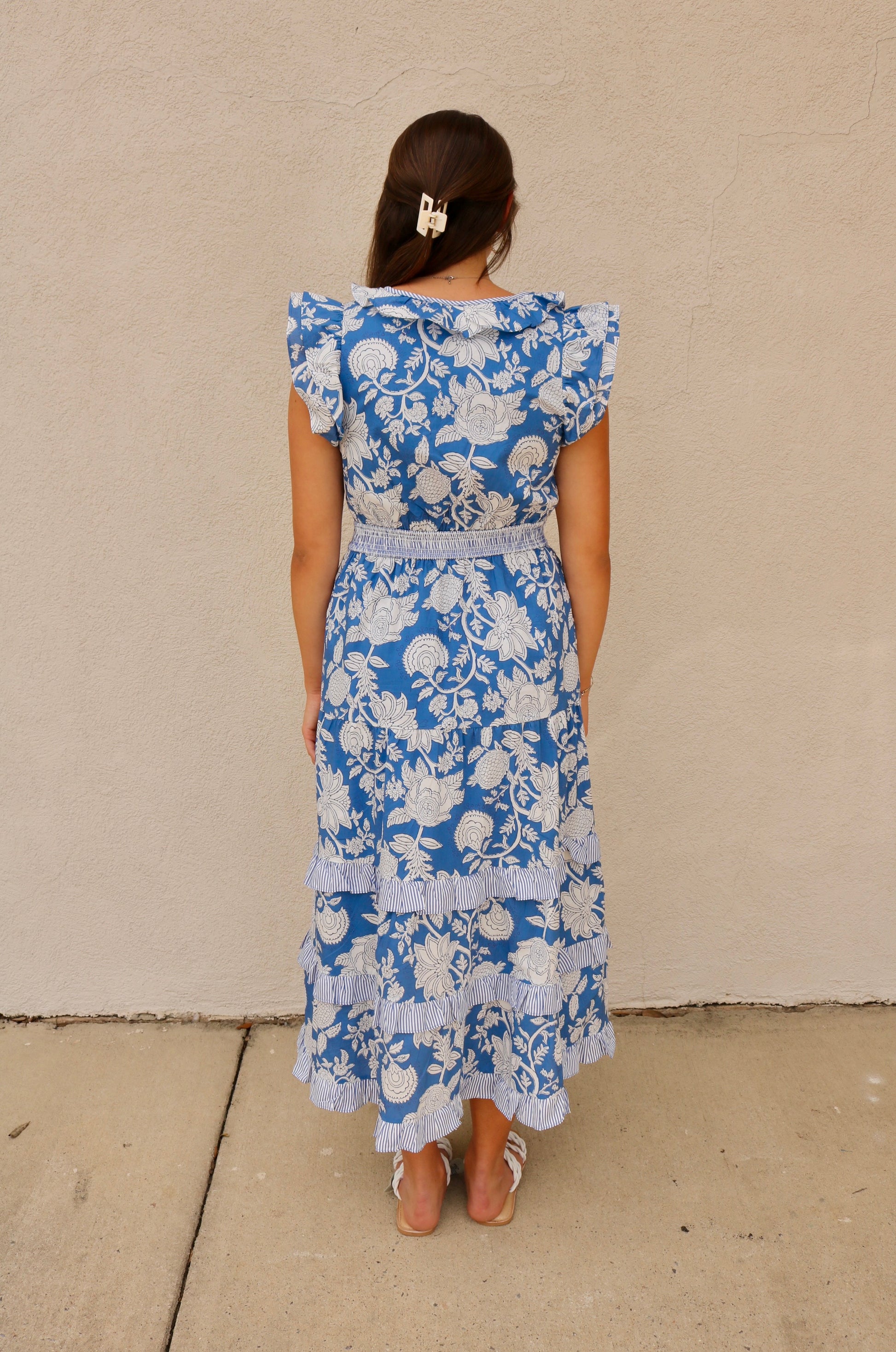 The Isabella Maxi Dress is chic and classy. It is the perfect dress and can be worn year-round. It's unique pattern and adorable ruffles will help you look and feel your best at any event.