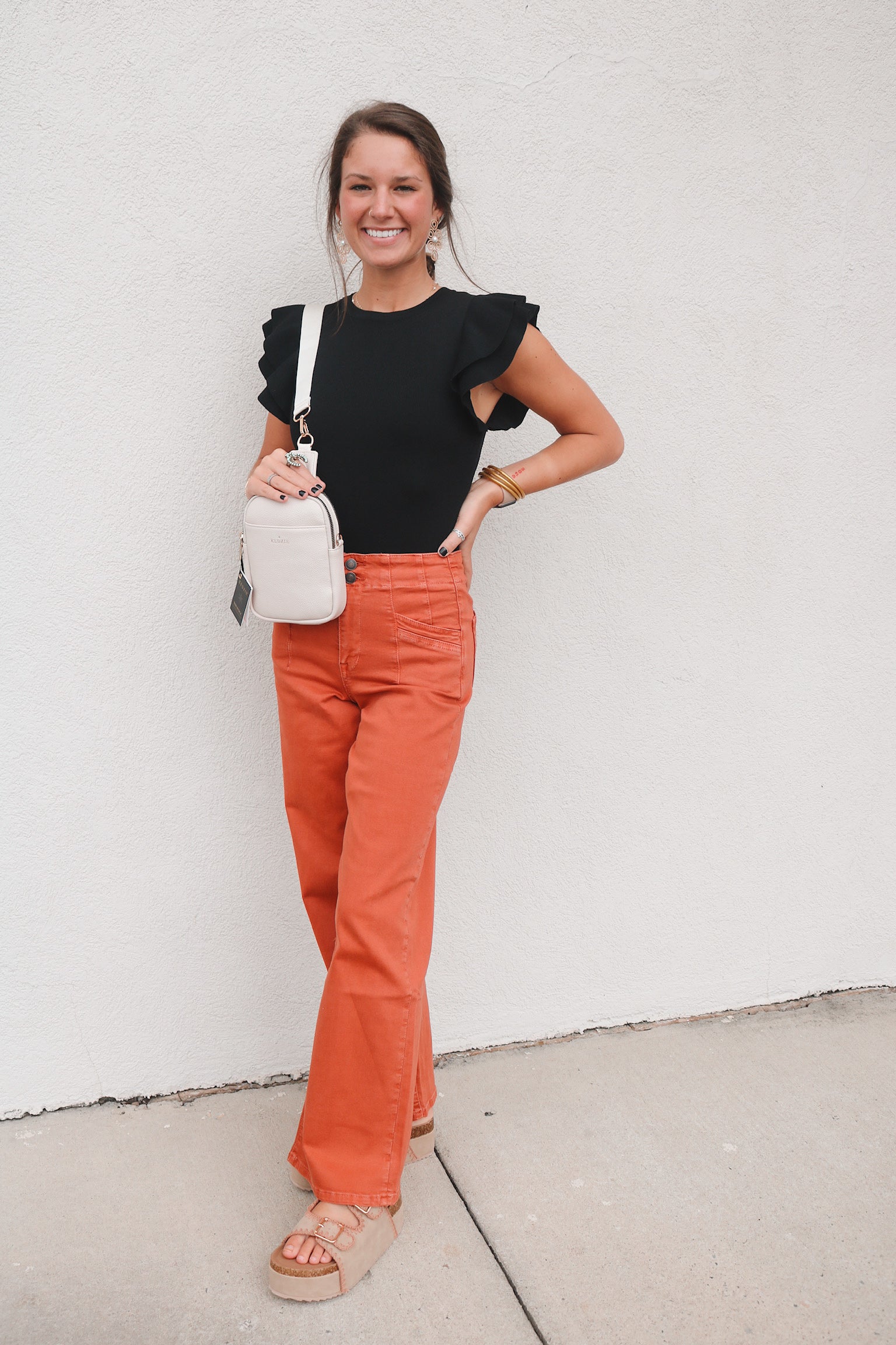 The Kiki Ruffle Bodysuit is a flattering and versatile staple piece with ruffle sleeves and a ribbed finish. Dress it up or wear it everyday, this bodysuit is the perfect addition to any wardrobe. Its comfortable and stylish design makes it a great layering option.